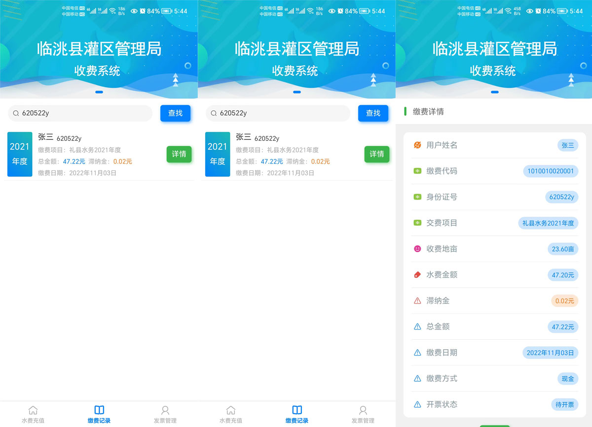 繳費(fèi)信息系統(tǒng):有錄入信息后可進(jìn)行收費(fèi)操作,以消息推送的方式將賬單發(fā)給用水戶,用水戶核對(duì)賬單后可以直接點(diǎn)擊該消息進(jìn)行自主繳費(fèi),也可以代繳;繳費(fèi)完成即推送完成繳費(fèi)消息并提示下載憑證和發(fā)票。